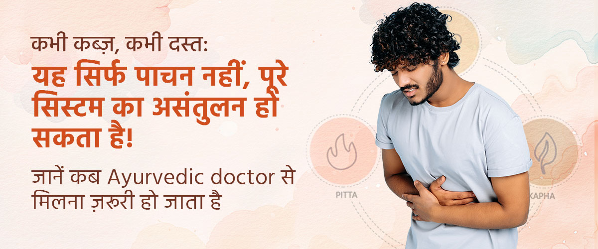 आपका शरीर बहुत साफ़ संकेत देता है, बस ज़रूरत होती है उन्हें समझने की। कभी कब्ज़ और कभी दस्त उसी संकेत का हिस्सा हो सकते हैं। इस ब्लॉग में हम विस्तार से जानेंगे कि आपके शरीर में ऐसा क्यों होता है, क्यों कभी कब्ज़ तो कभी दस्त जैसे लक्षण दिखते हैं, और कब यह समस्या सिर्फ पाचन तक सीमित नहीं रहकर आपके स्वास्थ्य के अन्य महत्वपूर्ण हिस्सों को भी प्रभावित कर सकती है। साथ ही, हम यह भी समझेंगे कि कब आपको Ayurvedic doctor से मिलना ज़रूरी हो जाता है ताकि आप पूरे सिस्टम के असंतुलन को सही तरीके से पहचान सकें और समाधान पा सकें।