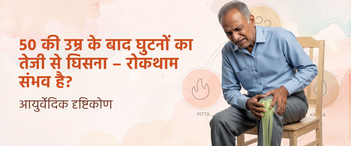 इस लेख में हम विस्तार से समझेंगे कि 50 की उम्र के बाद घुटनों का घिसना क्यों शुरू होता है, इसके लक्षण क्या हो सकते हैं, जाँच कैसे की जाती है, इसके चरण क्या होते हैं और आयुर्वेदिक दृष्टि से किन उपायों से इसे नियंत्रित करने में मदद मिल सकती है।