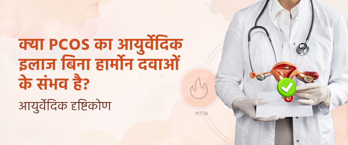 आयुर्वेद के हिसाब से पीसीओएस मुख्य रूप से कफ और वात दोष के बिगड़ने तथा मेद धातु के दूषित होने से जुड़ा होता है। गलत खान-पान, जंक फूड, ज़्यादा मीठा खाने और गतिहीन जीवनशैली से शरीर में टॉक्सिन्स बनते हैं जो इंसुलिन रेजिस्टेंस पैदा करते हैं और अंडाशय में सिस्ट बनाते हैं। सिर्फ कृत्रिम हार्मोन खाने से ब्लीडिंग तो हो जाती है, लेकिन बीमारी अंदर ही बढ़ती रहती है। इलाज में शरीर की शुद्धि और ओव्यूलेशन को प्राकृतिक बनाना सबसे ज़्यादा आवश्यक है। इसमें दोषों को संतुलित करना, लो-ग्लाइसेमिक डाइट लेना, शतावरी व कचनार जैसी जड़ी-बूटियाँ इस्तेमाल करना, और रोज़ाना योग (व्यायाम) करना शामिल है जिससे बीमारी को बिना हार्मोनल दवाओं के जड़ से ठीक किया जा सके।