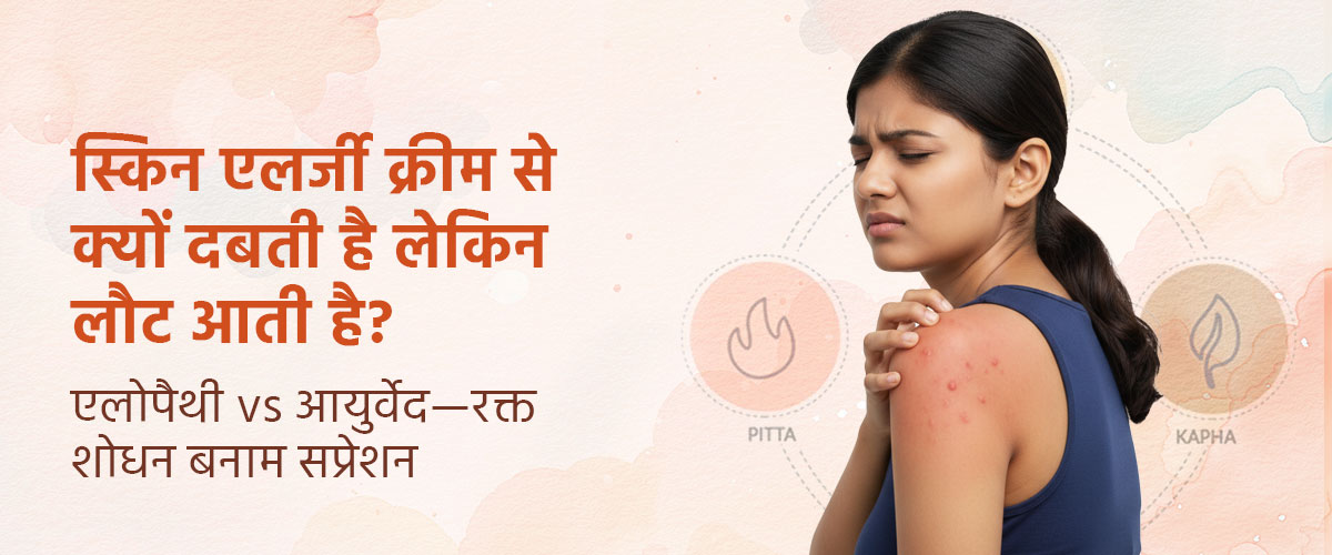 स्किन एलर्जी केवल बाहरी त्वचा की परेशानी नहीं, बल्कि शरीर के अंदर चल रहे असंतुलन का संकेत हो सकती है। आधुनिक चिकित्सा जहां त्वरित राहत देकर खुजली और रैशेज को कम करती है, वहीं आयुर्वेद इसके मूल कारण-जैसे पित्त-कफ असंतुलन, दूषित रक्त और ‘आम’-पर कार्य करता है।